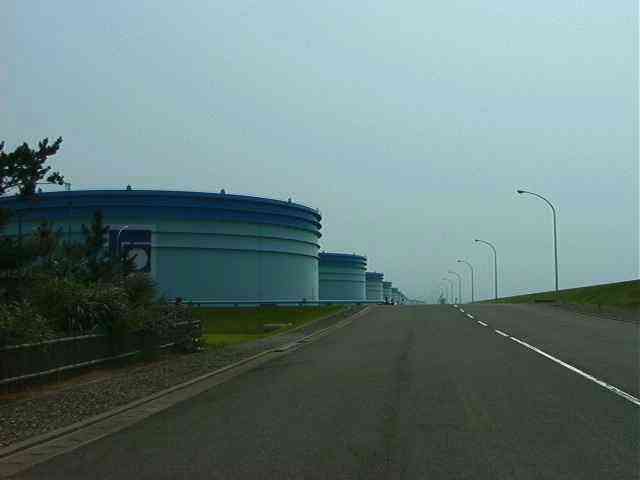 石油備蓄基地の原油タンク (H13.7)