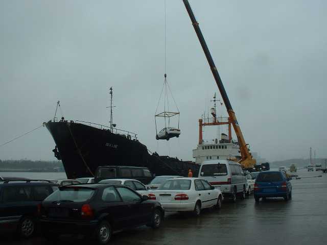 中古車輸出の荷役状況 @(H15.4 北2号岸壁)